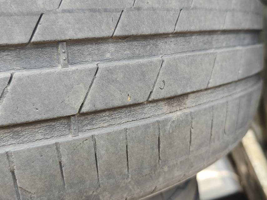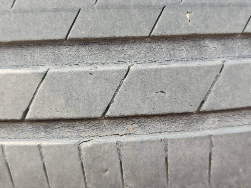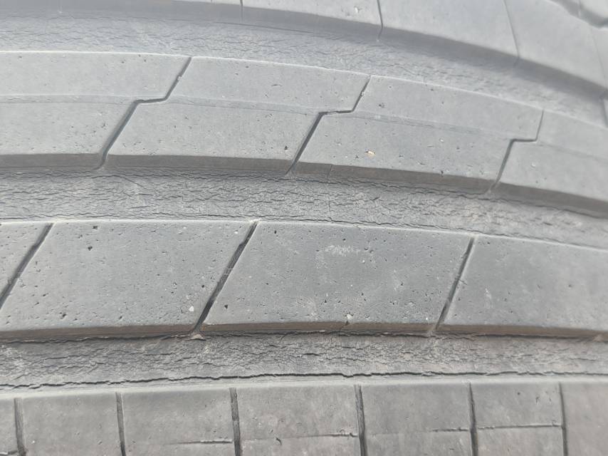 韩泰轮胎2年就开裂了!4条轮胎都有不同程度的裂纹!