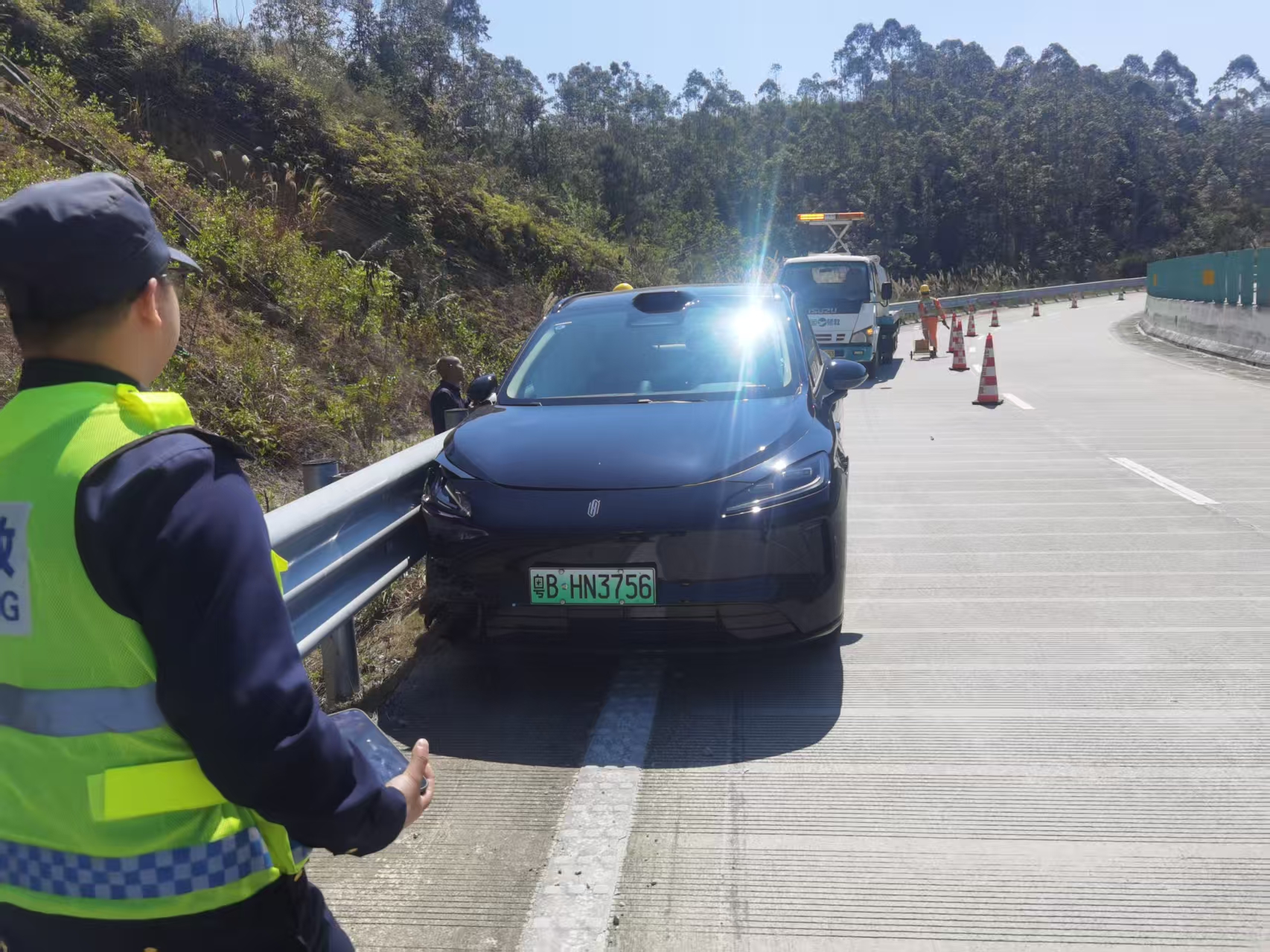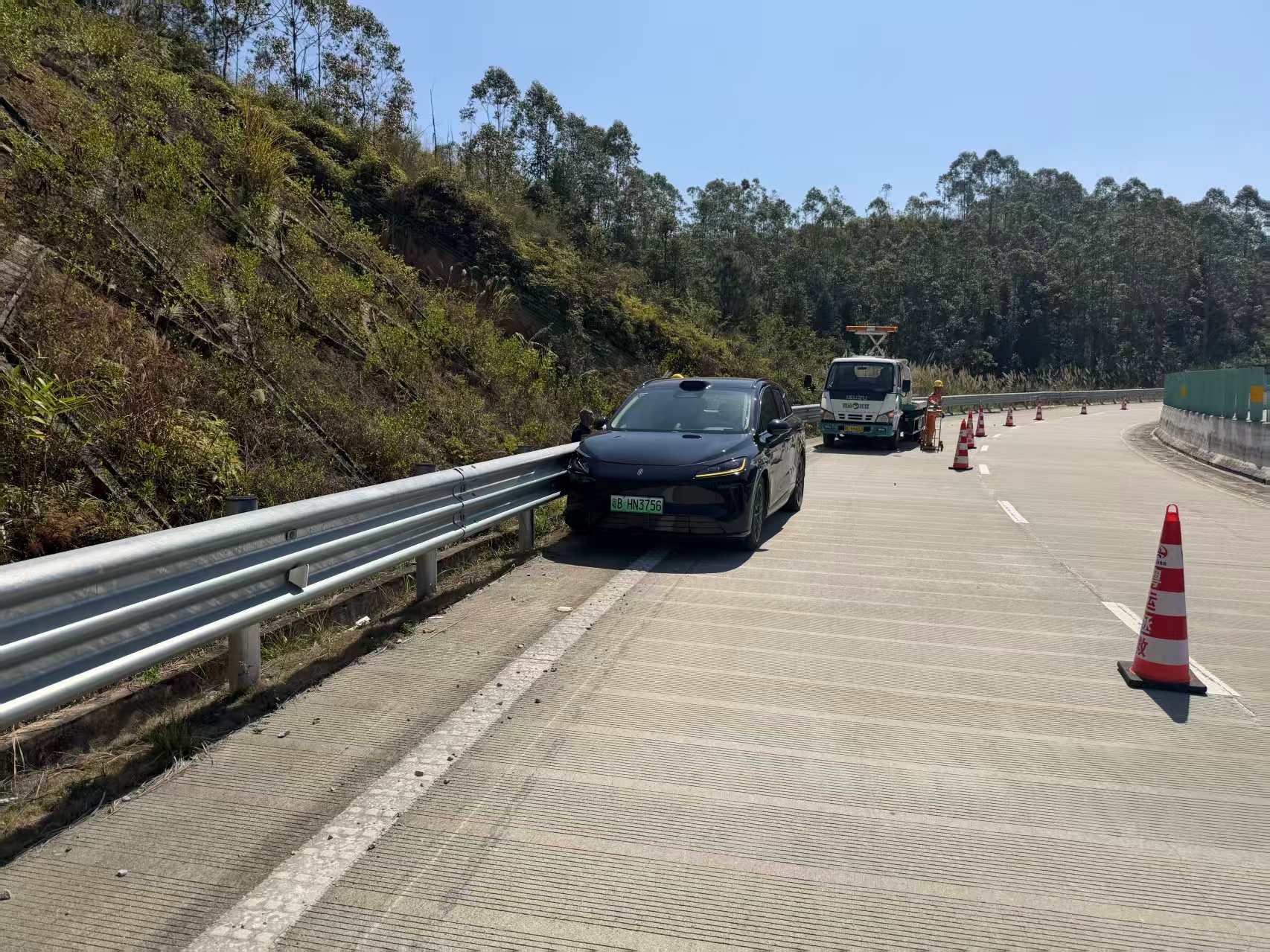2026年3月14日10时36分在广龙高速由南往北方向行驶至318公里处刹车失灵碰撞道路防护栏,造成小客车和护栏受损严重,人员轻微伤