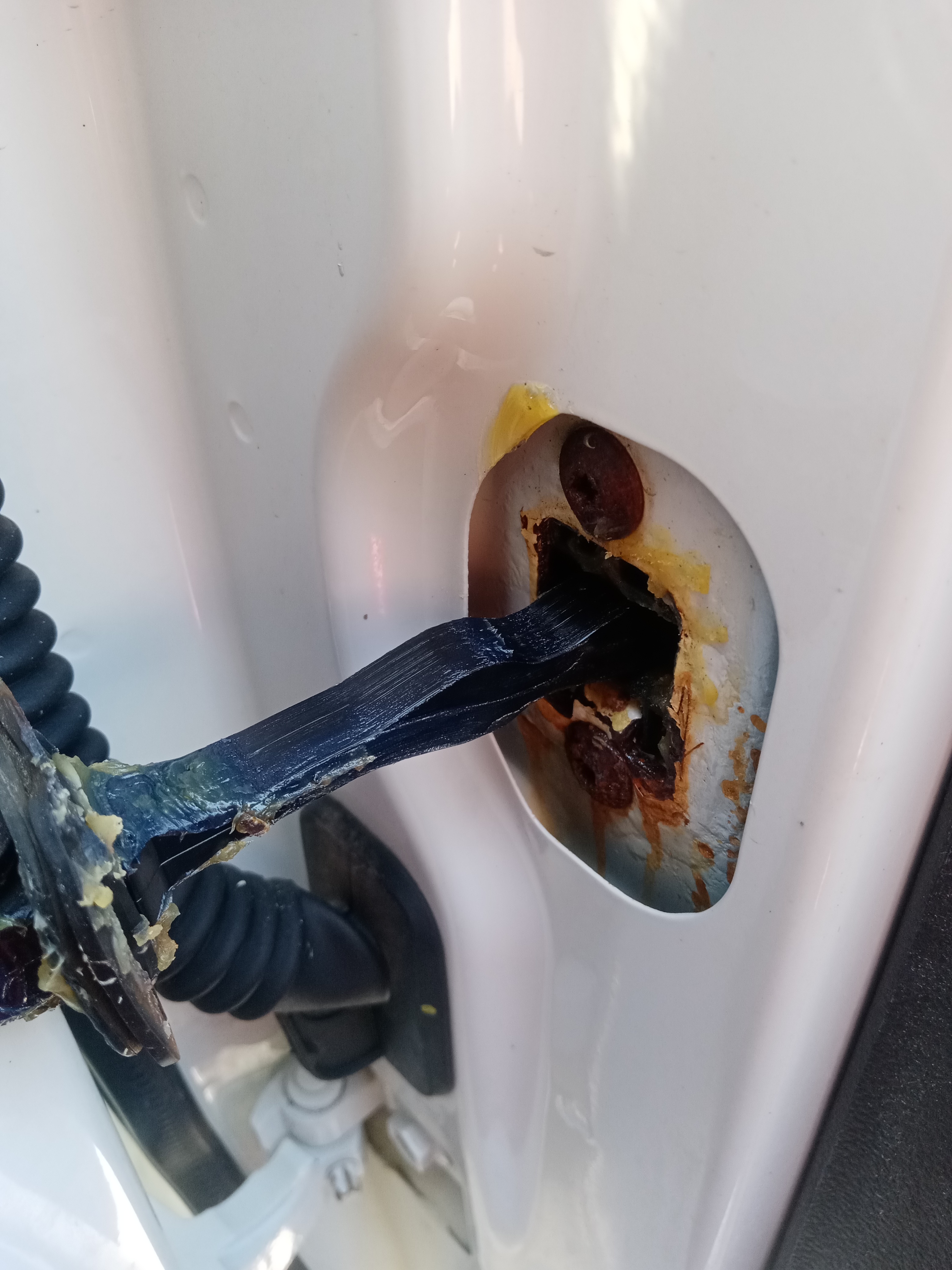 车辆左后门和右后门镀锌钢板生锈,出厂防锈没做好