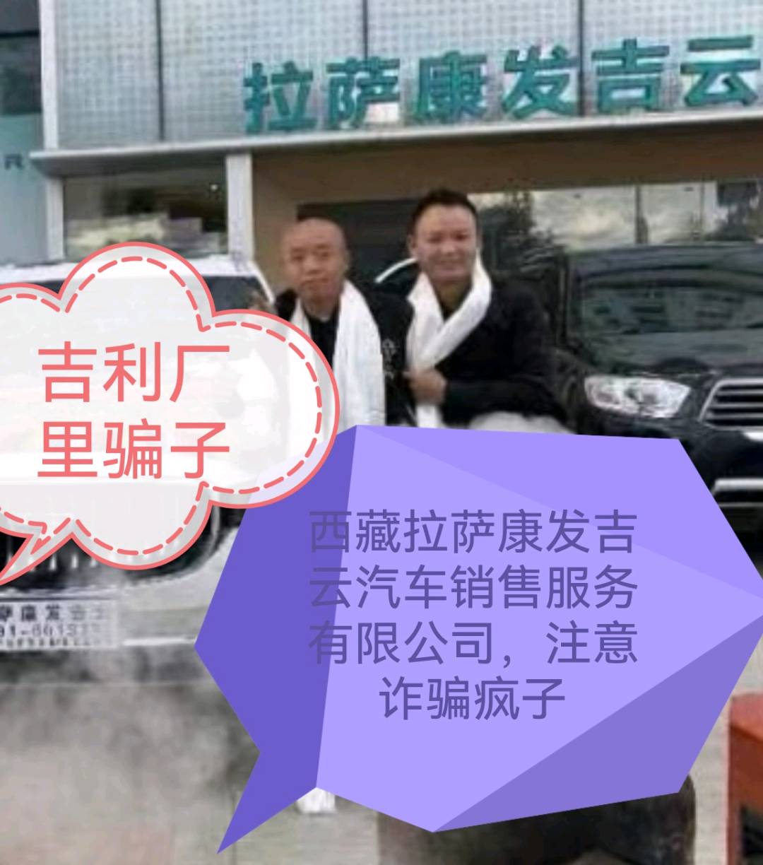 反映问题。一致推卸责任。卖的假冒产品。 我的要求。 48小时内出现的问题。,按照市场监督管理局的三保发来解决。爆胎。刹车片发烫。吉利汽车标志变形。车进脚气。后备箱变形。后门子严重性的脚气。下挂噪音太大。当时检测的报告呢?一次一次。去找服务人员。技术差还是,问题查不出来。去找。服务站。4s店。几十次了?一直问题没查出来。如果厂家不出来解决。一直在网暴。 国家汽车质量网。投诉。 厂家出来给客户一个满意的答复。 吉利厂家开始扯皮,质量检测不达标,中国人不骗中国人,吉利集团最大的诈骗分子 顾客是恶意举报,吉利厂家恶意欺骗上拉萨。经开区李秋云通通报信。拉萨康发吉云汽车销售服务责任有限公司西藏组织部没办法吗?李秋云后面的保护伞有多大?