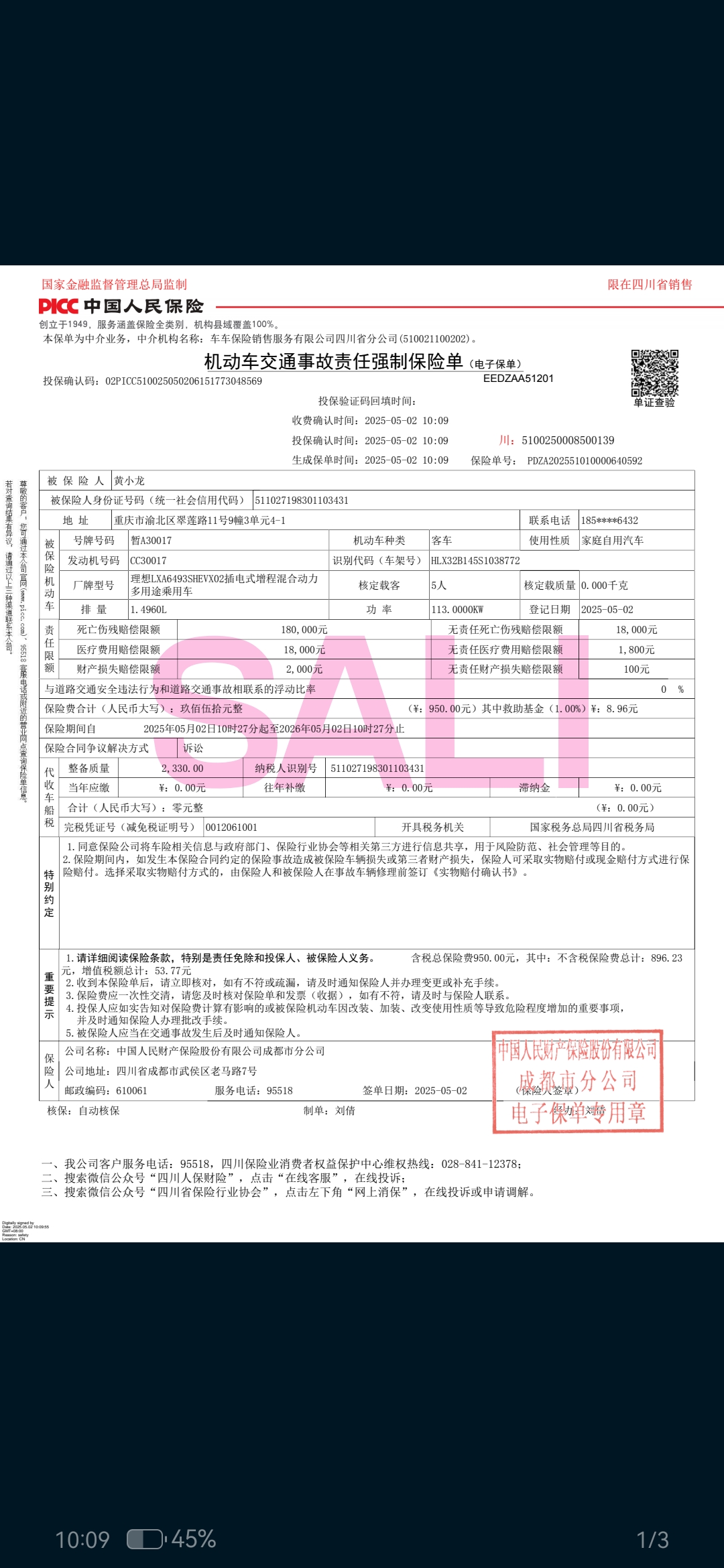 我是2025年5月2日提的车,在我提车前2025年4月29日该车辆就有上保险的记录,当时在交付车辆的时候,没有工作人员告知该车辆有上过保险记录,现在一直联系厂家都没有人员出来解决问题。